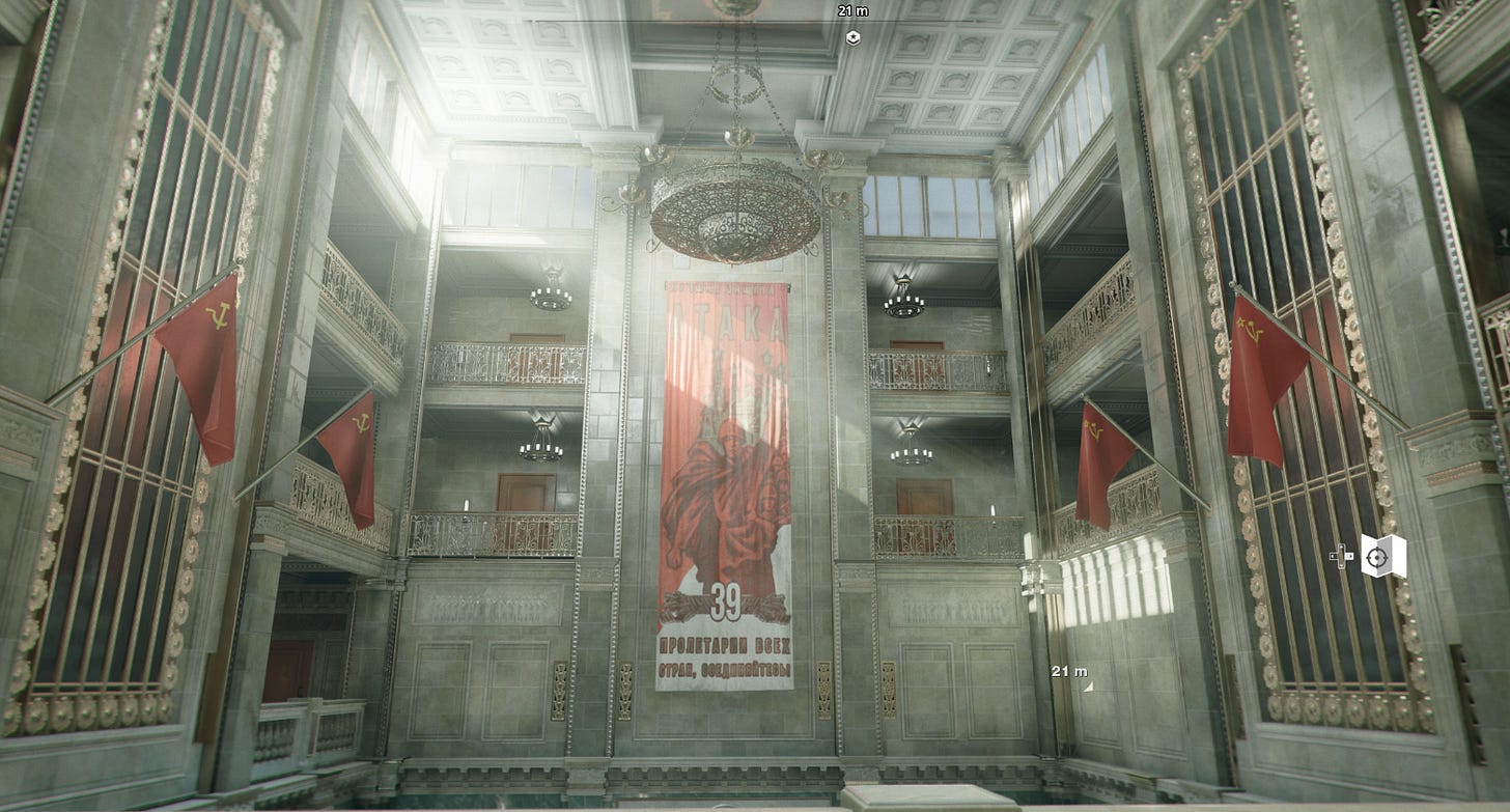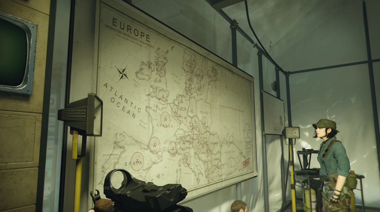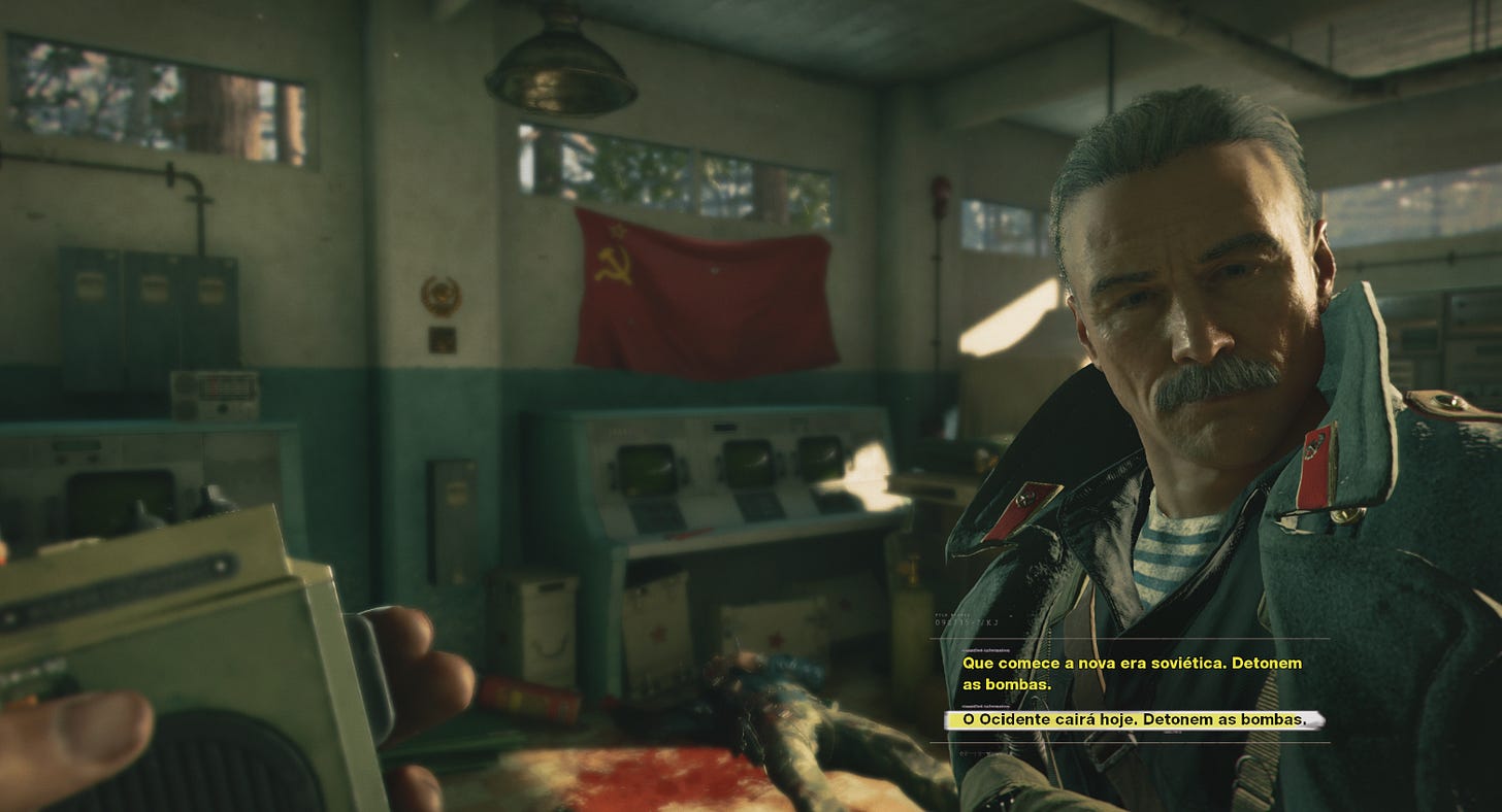 Em seguida, o protagonista encontra Perseus, que ri da cara dos americanos por acreditarem que ele é o grande vilão da história. “Perseus, na verdade, não é um homem, mas uma ideia”, diz o personagem, confirmando que a verdadeira ameaça é, na verdade, O FANTASMA DO COMUNISMO (!!!!!!). O chefe russo te entrega um controle e te dá a honra de destruir a Europa, em um sistema arbitrário e que não te dá escolhas senão explodir o Velho Continente e incriminar os americanos. Afinal, comunistas são malvados e é isso aí.